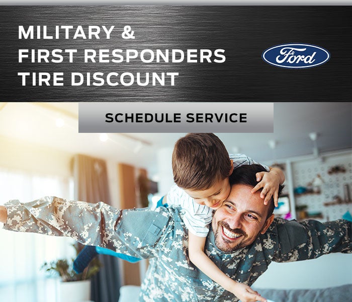 1The Ford Military and First Responder Tire Discount Program is available to active and retired Military and First Responders who purchase and have installed a set of four (4) qualifying tires. Qualifying customers are eligible to receive a discount of $80 off participating brands at the time of installation. Participating brands are: Goodyear®, Michelin, BFGoodrich®, Continental, General, Pirelli, Hankook, Bridgestone, Falken, and Toyo®. Toyo medium/commercial truck and Motorsport patterns are excluded. This discount is in addition to any other eligible discount, rebate, or offer a dealer or tire manufacturer may already provide. Tires must be installed at a participating U.S. Ford Dealer, Lincoln Retailer, or Quick Lane® Store. Prior authorization is necessary before work is performed, and program-provided Hero Code must be presented at the time of purchase — ID.me account and validation are required. Hero Code is nontransferable and can only be used by the associated ID.me account holder. Maximum of two Hero Codes per calendar year per customer can be generated/claimed. Offer valid for tires purchased and installed 1/1/25 – 12/31/2026. Unused 2025 Hero Codes expire after 12/31/25. Unused 2026 Hero Codes expire after 12/31/26. Quick Lane® is a registered trademark of Ford Motor Company.